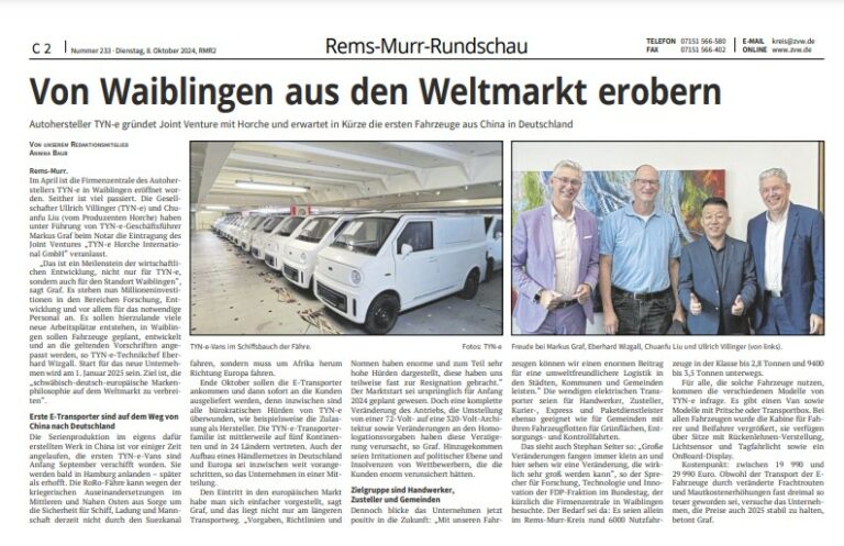 TYNe: Stellungnahme Shandong Horche Intelligent Automobile Co., LTD. und TYN-e GmbH