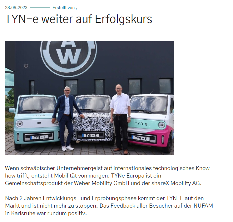TYNe: Stellungnahme Shandong Horche Intelligent Automobile Co., LTD. und TYN-e GmbH